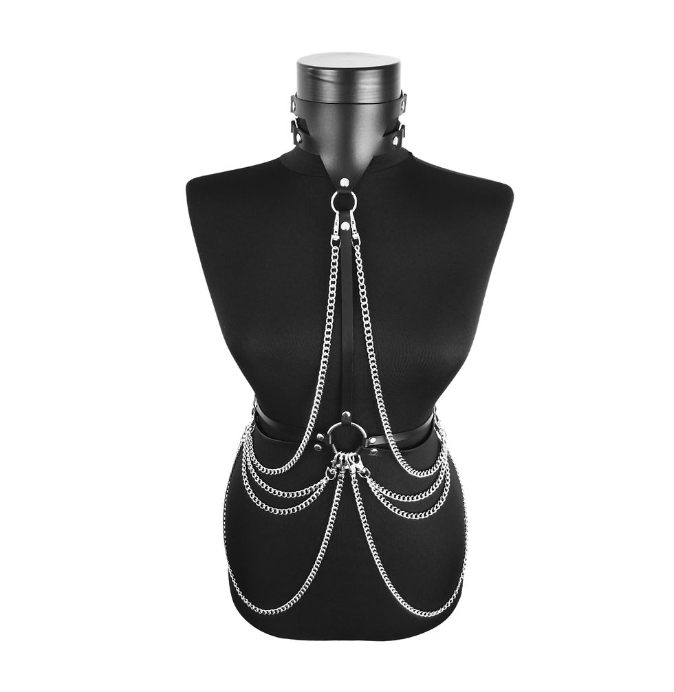 Full body women harness with chains made from two pieces