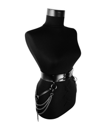 All eyes on you with this wide black leather belt featuring three chains hanging from each side. The edgy design and unique triple chain accent make this belt a must-have accessory for any fashion-forward wardrobe.