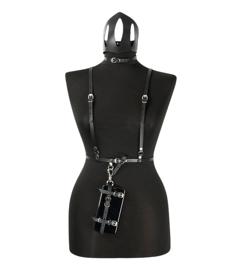 Stay connected in style with our black leather harness equipped with a dedicated phone case. This versatile accessory not only complements your outfit but also ensures you have your essentials within easy reach.