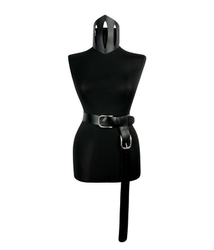 Introducing our stylish black waist belt, the perfect accessory to elevate any outfit. Crafted with high-quality leather, this belt will provide a comfortable fit and a timeless look. The sleek design features modern buckles that will add sophistication to any ensemble. Wear it with your favorite jeans or dress it up with a skirt or trousers, either way, this belt is a must-have in your wardrobe.
